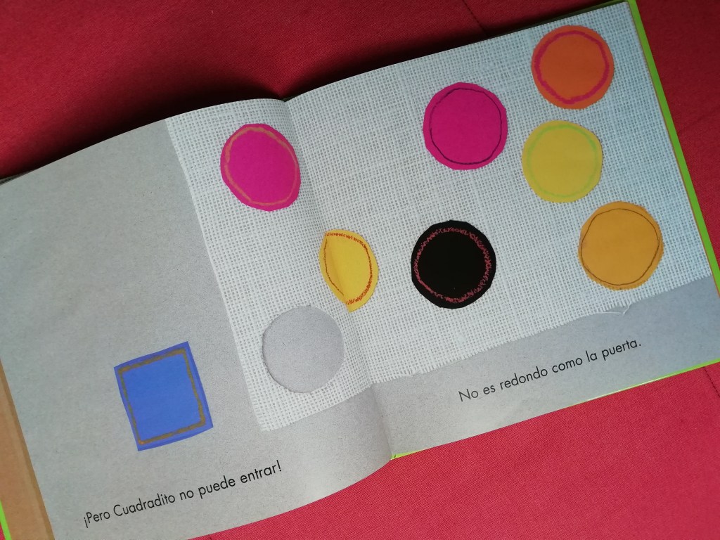 A Cuadradito le gusta divertirse con sus amigos los Redonditos. Pero, ¿cómo puede reunirse con ellos en la casa grande? ¡La puerta es redonda!” Un planteamiento sencillo, unos textos sencillos, con frases cortas y dibujos simples pero efectivos. Todo cargado de mucho simbolismo y color para enseñarnos un importante valor.